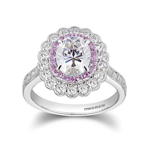 DovEggs Ruby Rings Engagement Ring for Women 2ct Oval Cut Created Ruby/Cut Moissanite, Milgrain Floral Double Halo Wedding Ring Moissanite Accents 14K Gold QUALITY Sterling Silver