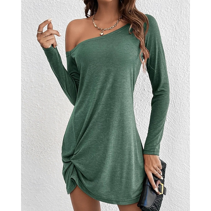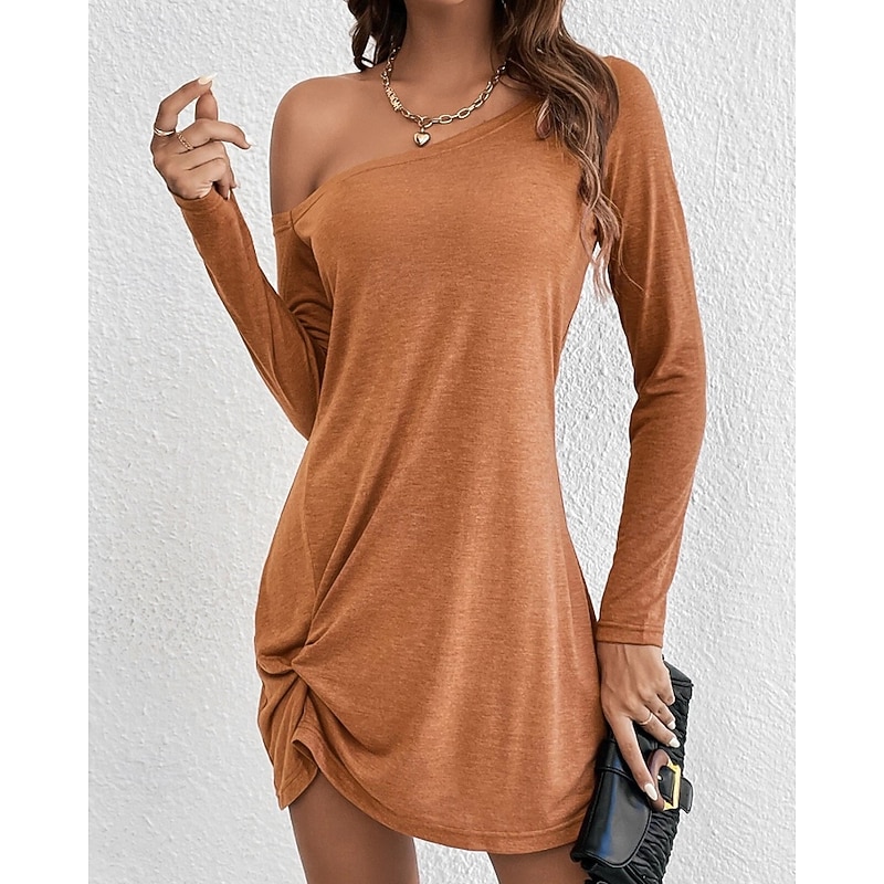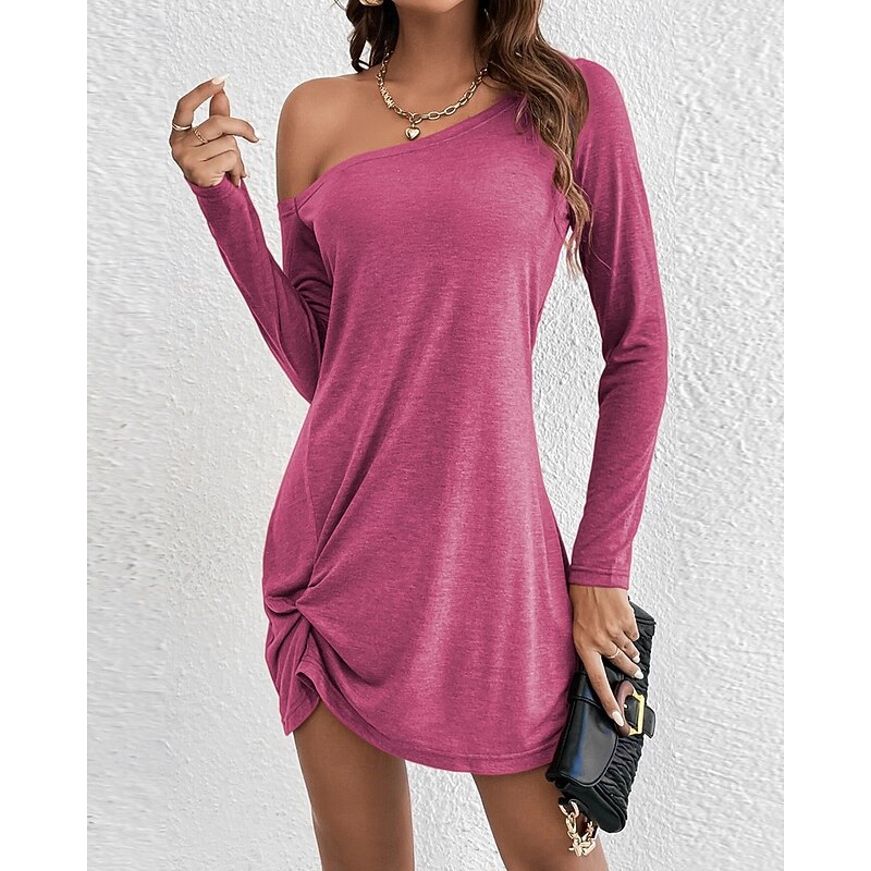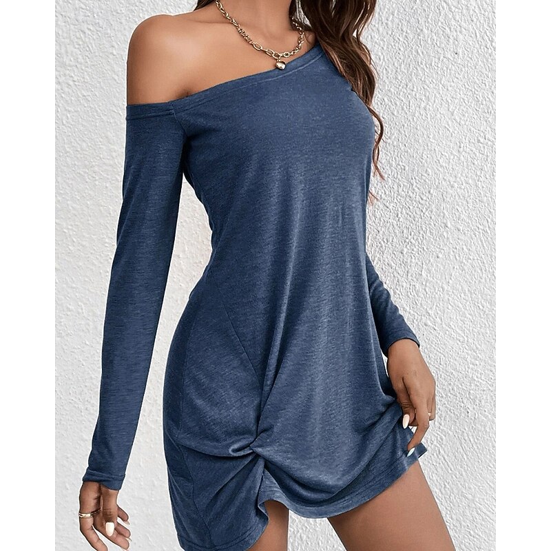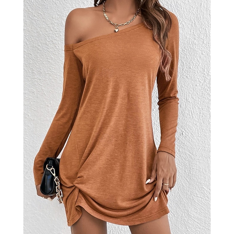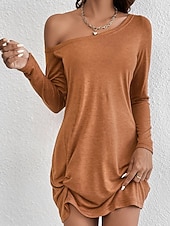 More information about Women's Mini Dress Casual Dress T Shirt Dress Tee Dress Modern Outdoor Daily Holiday Regular Fit Plain Long Sleeve Cold Shoulder Blue Brown Green Rose Red Spring Fall
