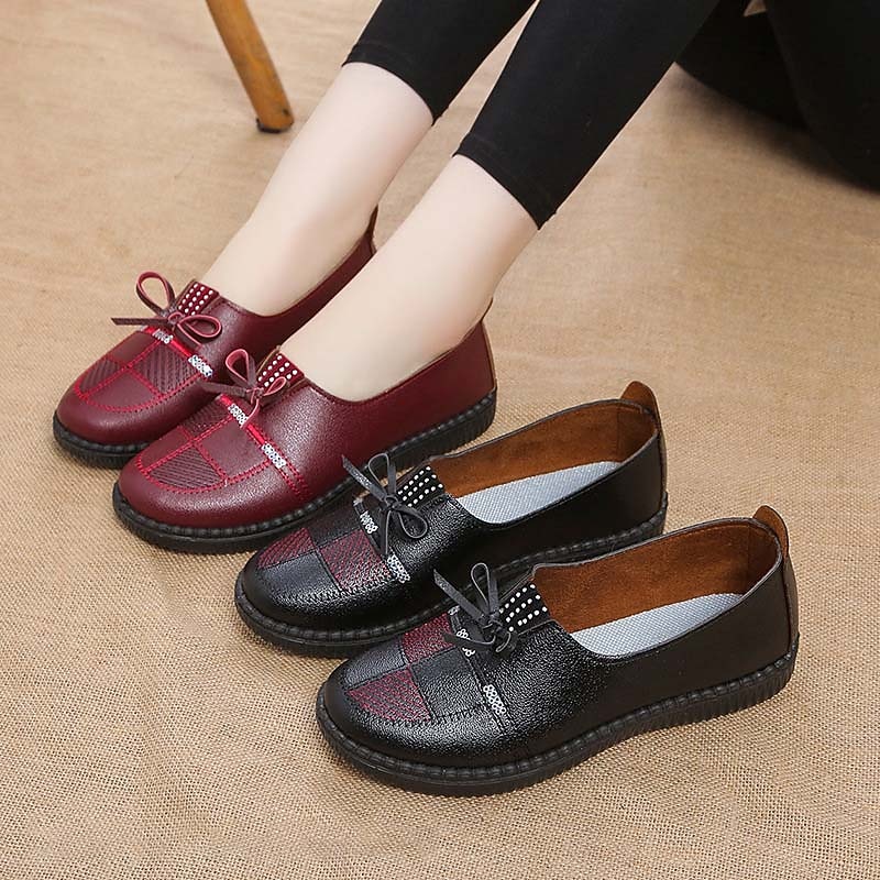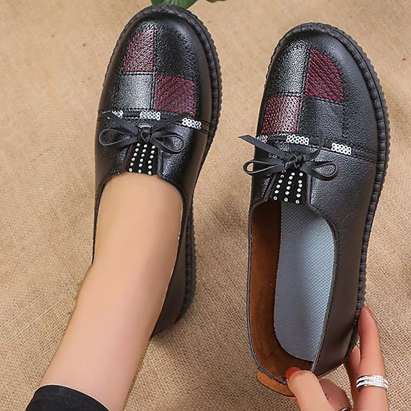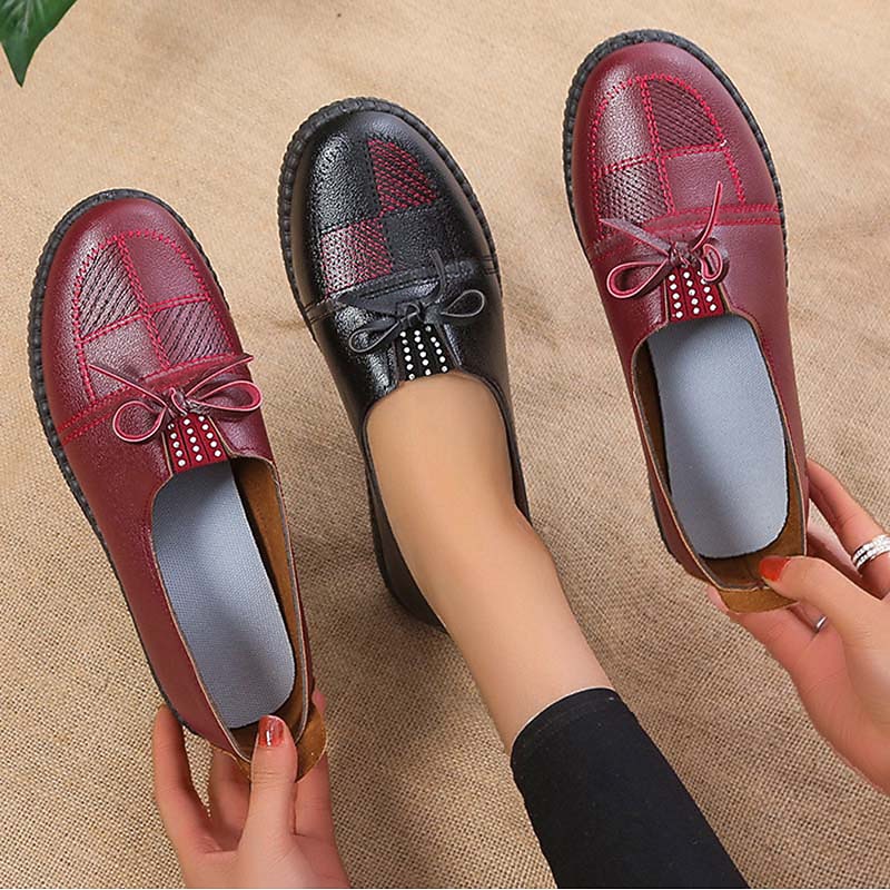 HOT ! Women's Soft Sole Slip-On Casual Loafers – Lightweight PU Leather Flats with Lace Detail for Walking, Travel & Everyday Wear