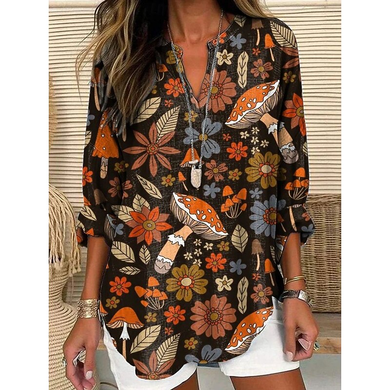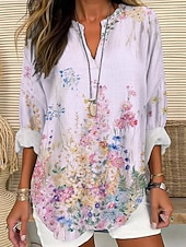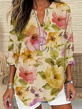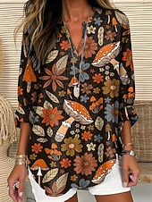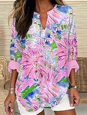 More information about Women's Shirt Floral Stylish Modern Long Sleeve V Neck Regular Tops Daily Holiday Buttons Print Black Yellow Pink Purple Orange Summer