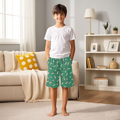 ALAZA Baseball Stylish Green Pajama Shorts Elastic Waist Casual Sleep Shorts with Pockets Size 6-14 3
