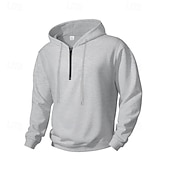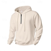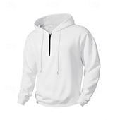 More information about Men's Hoodie Pullover Hoodie Sweatshirt Quarter Zip Hoodie Black White Blue Khaki Gray Hooded Plain Zipper Sports & Outdoor Casual Daily Streetwear Cool Sportswear Spring & Fall Clothing Apparel
