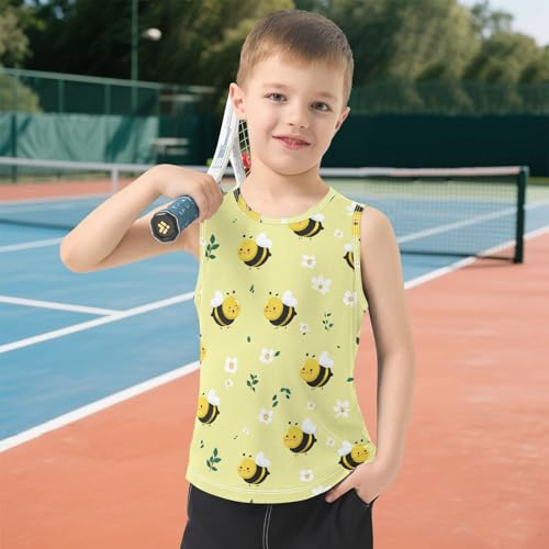 Bolaz Boys Athletic Quick Dry Tank Top Sleeveless Workout T Shirts Age 11-15,Bee and Daisy 1
