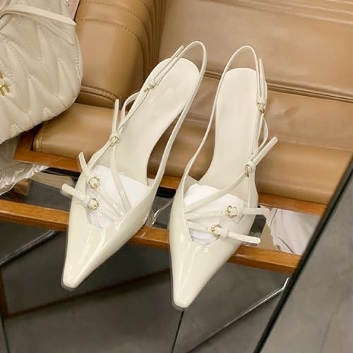 HOT ! Women's Patent Leather Kitten Heel Slingback Pumps Fashion Adjust Buckle Strap Pointed Toe Comfortable Low Heels Dress Shoes for Party Prom Dating Working