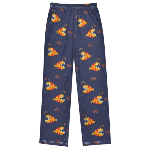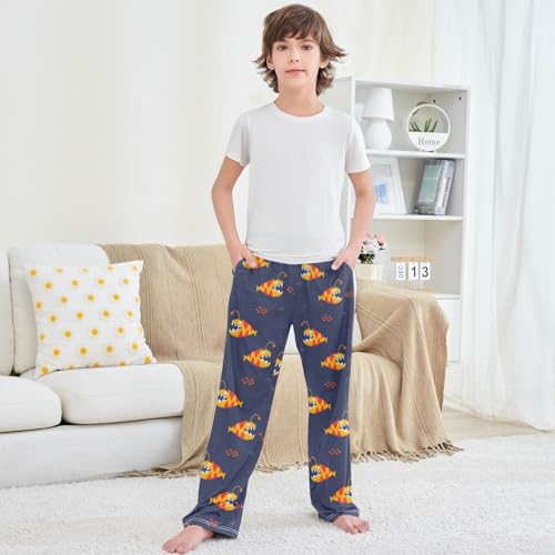 Boy's Pj Pants Cute Yellow Orange Fish Lounge Bottoms Elastic Waist Kids Joggers with Pockets Size 6-14 7