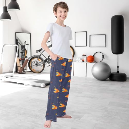 Boy's Pj Pants Cute Yellow Orange Fish Lounge Bottoms Elastic Waist Kids Joggers with Pockets Size 6-14 4