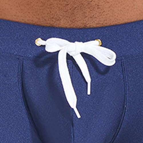 Maiyifu-GJ Men Swim Trunks Boxer Briefs Elastic Waist Swimming Trunks Sexy Quick-Drying Board Shorts with Drawstring (Dark Blue,XX-Large) 6