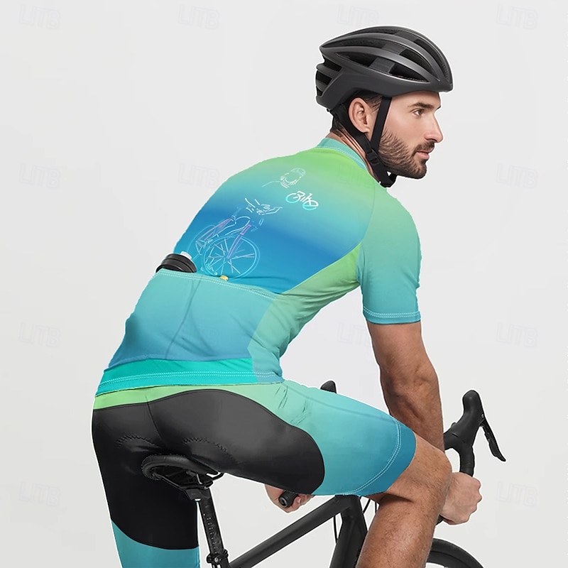 Men's Cycling Jersey Gradient Short Sleeve Bike Tee Tshirt Jersey with 3 Rear Pockets Mountain Bike MTB Quick Dry Anatomic Design Wicking Breathable Sports Blue Purple Green Clothing Apparel 21