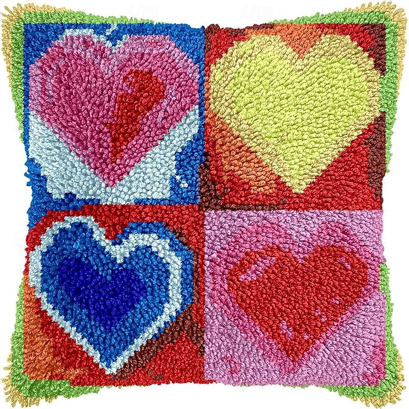 HOT ! Latch Hook Kit DIY Pillowcase for Adults and Kids Craft Kit Crochet Yarn Pillow Kit for Beginners Handcraft Printed Pillowcase Embroidery Set for Adults Cushion Cover Mother's Day Gifts