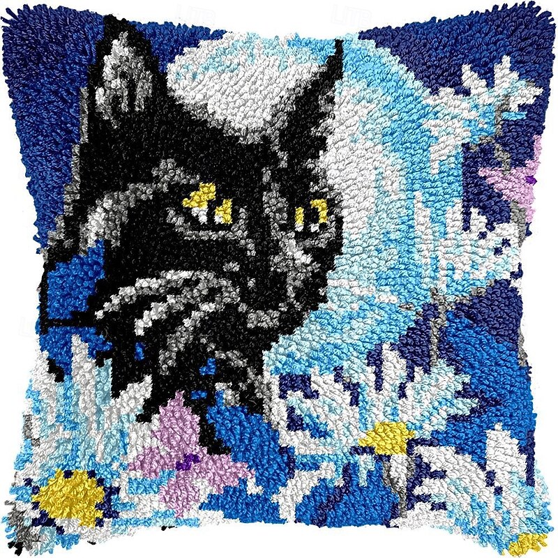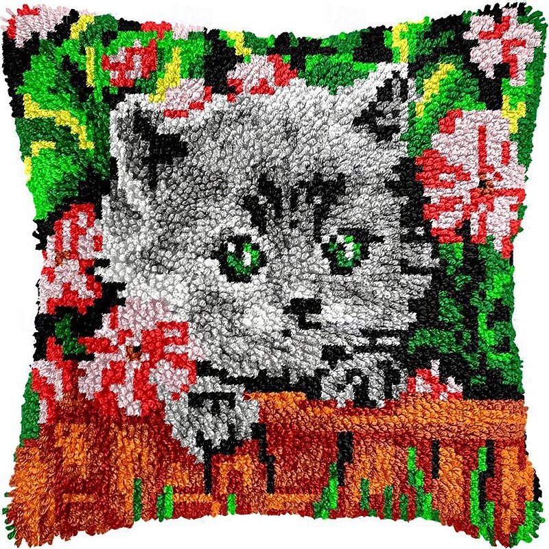 Latch Hook Kit DIY Pillowcase for Adults and Kids Craft Kit Crochet Yarn Pillow Kit for Beginners Handcraft Printed Pillowcase Embroidery Set for Adults Cushion Cover Mother's Day Gifts 1