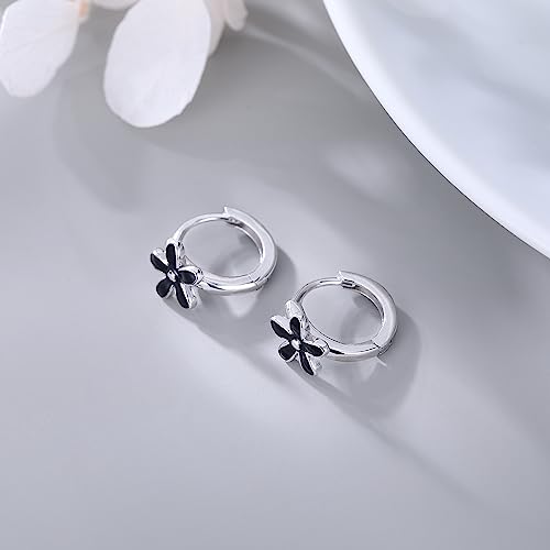 Reffeer Solid 925 Sterling Silver Daisy Flower Hoop Earrings Huggie for Women Teens Black Flower Hoop Earrings Cartilage Helix Earrings 5
