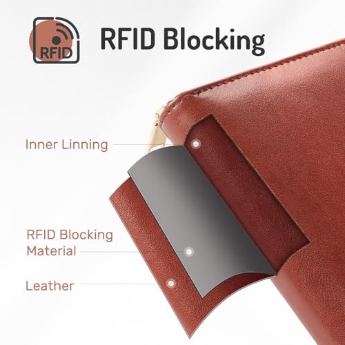 Forvencer Passport Holder Cover with Safe Zipper Closure, Premium Passport Wallet for Travel, Sleek RFID Blocking Card Case, Waterproof Travel Accessories for Men, Brown 5