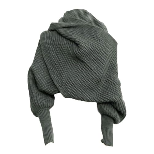 HOT ! Women Autumn Winter Scarf Wrap with Sleeve, Cozy Knitted Wrap Shawl, Lady Fashion Solid Color Knitted Wrap Scarf