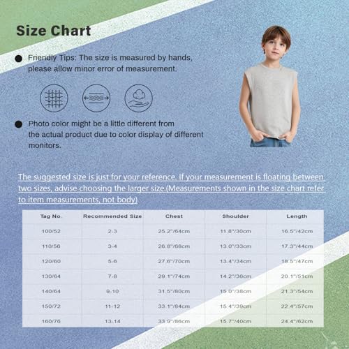 The Kids Boys Solid Color Tank Top Casual Sleeveless T-Shirt for Exercise Gym Running Basketball Training Workout works fine and arrived as expected.
