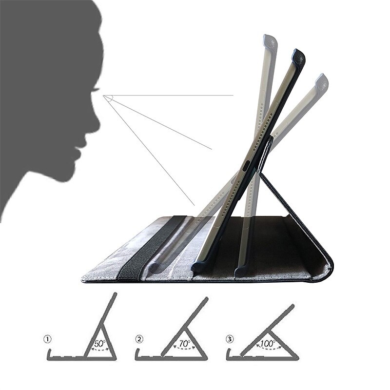 Highlights - 360 degree rotating structure allows for flexible landscape and portrait viewing - Automatically wakes or puts your device to sleep for convenience - Snap-n-roll design for easy mounting (snap on left side first, then right side) - Dual Layer hard interior cover and premium synthetic leather exterior provide excellent protection against scratches - Elastic band securely holds iPad closed while on the go - Available in a variety of bright and fun colors