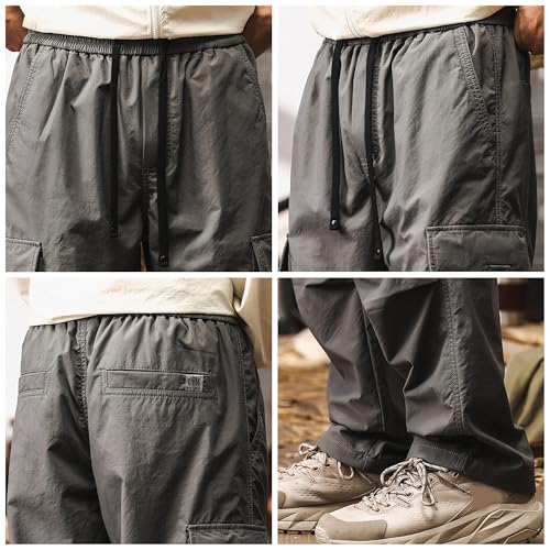 XYXIONGMAO Men's Grey Streetwear Overalls Cargo Pants Loose Drawstring Elastic Waist Multi-Pocket Sweatpants for Men 6
