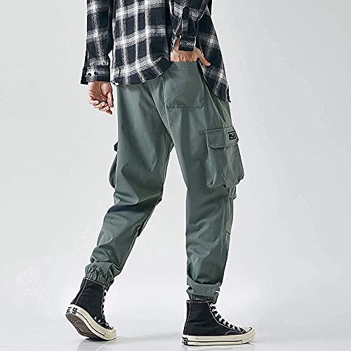 XYXIONGMAO Men's Tactical Hip Hop Sweatpants Black Techwear Streetwear Hip Hop Joggers Green Overalls Cargo Pants for Men 6