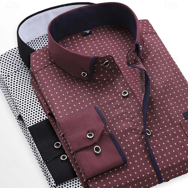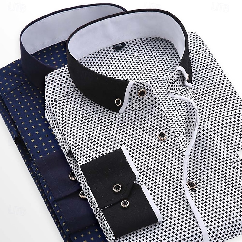 More information about Men's Dress Shirt Button Down Shirt Collared Shirt Polka Dot Wedding Outdoor Navy blue+black Navy Blue+Red Gray+Navy Blue White+Black Long Sleeve Turndown Summer Spring Clothing Apparel Button-Down