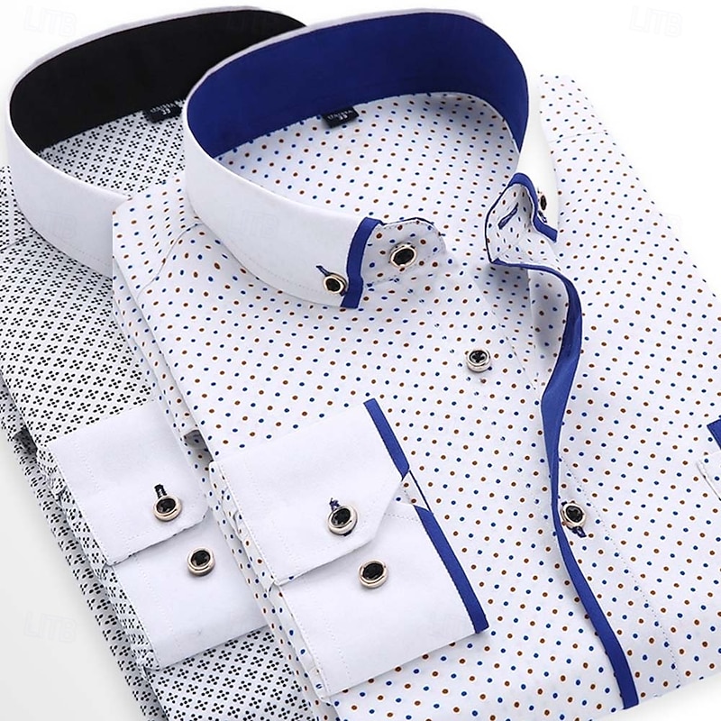 Men's Dress Shirt Button Down Shirt Collared Shirt Polka Dot Wedding Outdoor Navy blue+black Navy Blue+Red Gray+Navy Blue White+Black Long Sleeve Turndown Summer Spring Clothing Apparel Button-Down 2