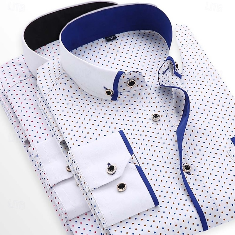 Men's Dress Shirt Button Down Shirt Collared Shirt Polka Dot Wedding Outdoor Navy blue+black Navy Blue+Red Gray+Navy Blue White+Black Long Sleeve Turndown Summer Spring Clothing Apparel Button-Down 20
