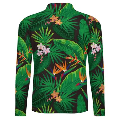 Tropical Jungle Floral Pattern Men's Rash Guard Long Sleeves Quick Dry Fishing Workout Shirts with Zipper 4