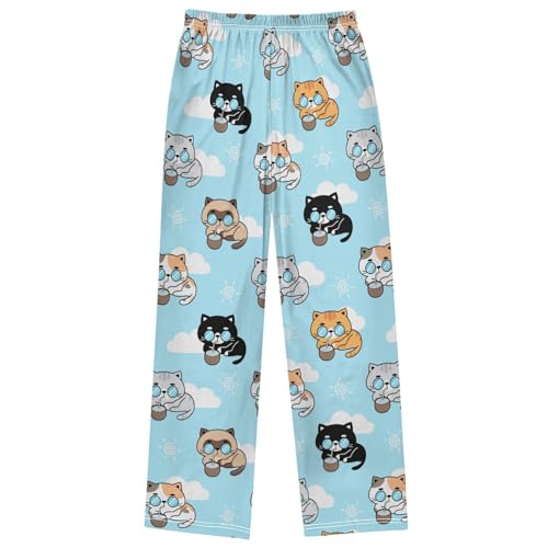 Boy's Pj Pants Cats Drinks Coconut Summer Lounge Bottoms Elastic Waist Kids Joggers with Pockets Size 6-14 7