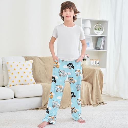 HOT ! Boy's Pj Pants Cats Drinks Coconut Summer Lounge Bottoms Elastic Waist Kids Joggers with Pockets Size 6-14