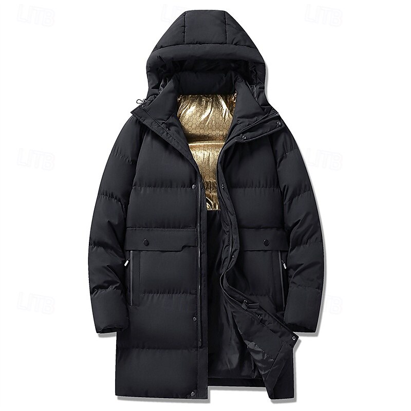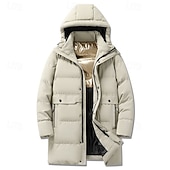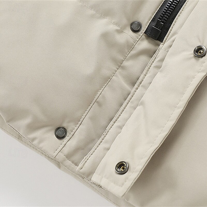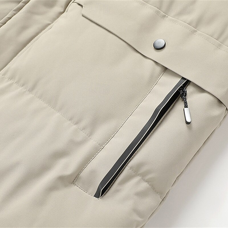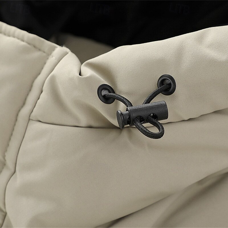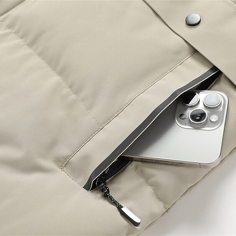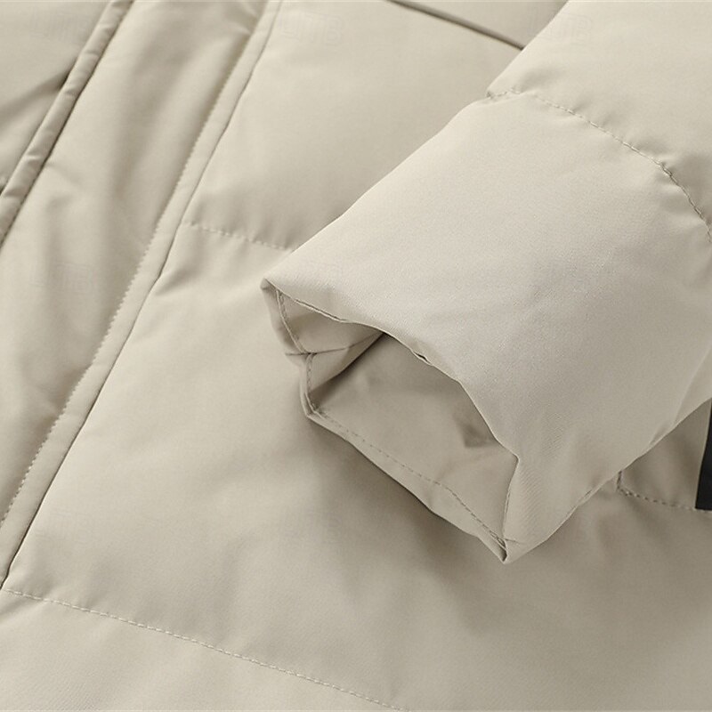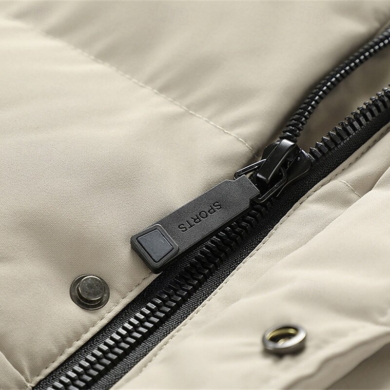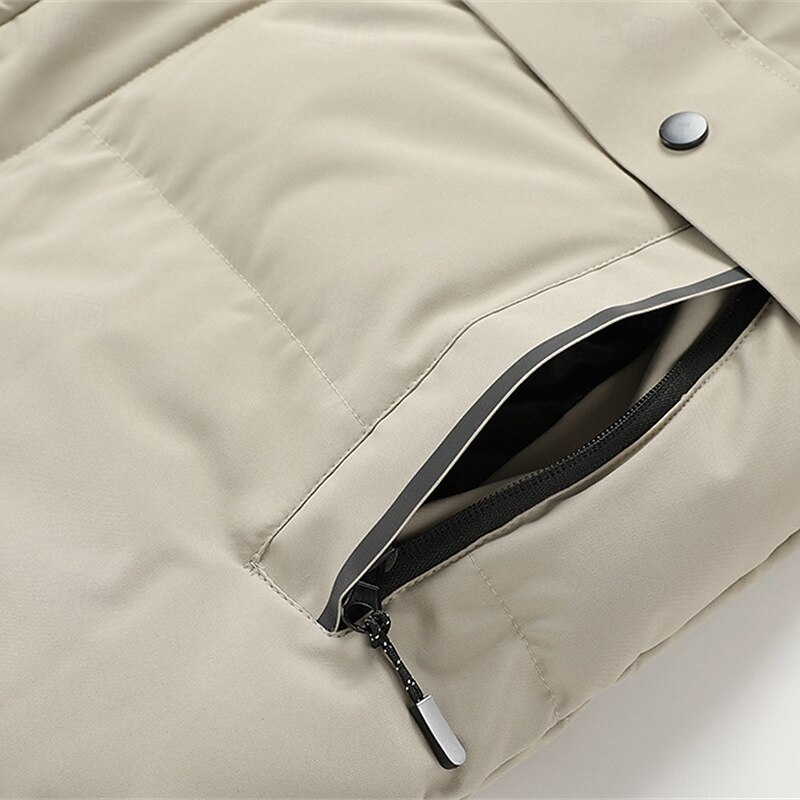 Men's Winter Coat Puffer Jacket Padded Jacket Pocket Polyster Vacation Daily Wear Date Regular Fashion Casual snug Thermal heated Fall Winter Solid / Plain Color Black Khaki Puffer Jacket