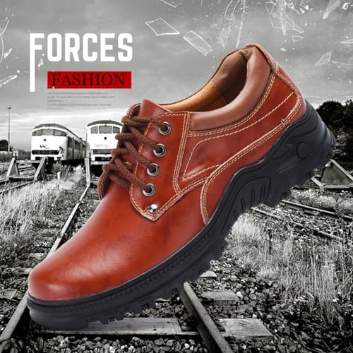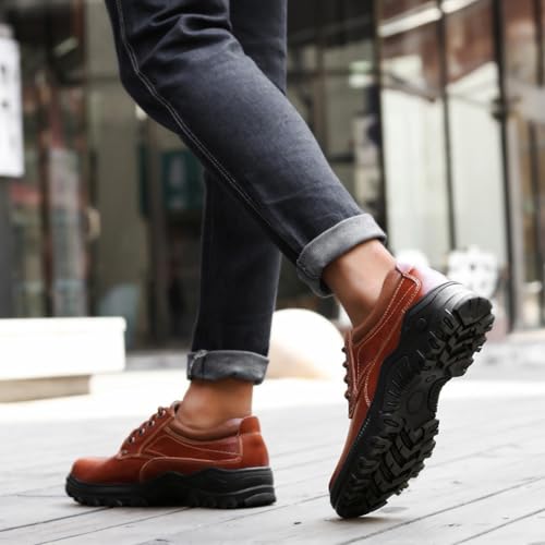 Men' S Leather Hiking Oxford Shoes Casual Round Toe Non-Slip Lace-Up Outdoor Hiking Shoes Suitable for Driving Work 6
