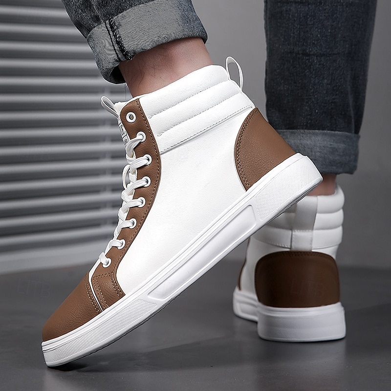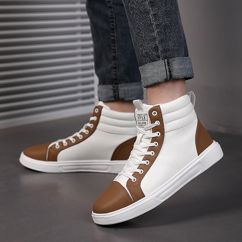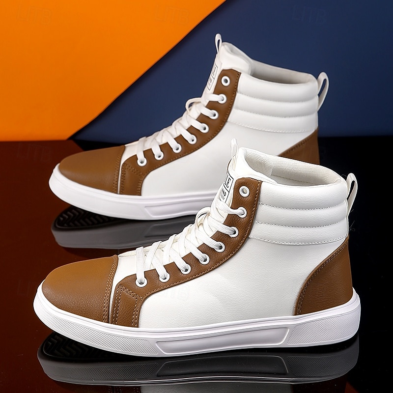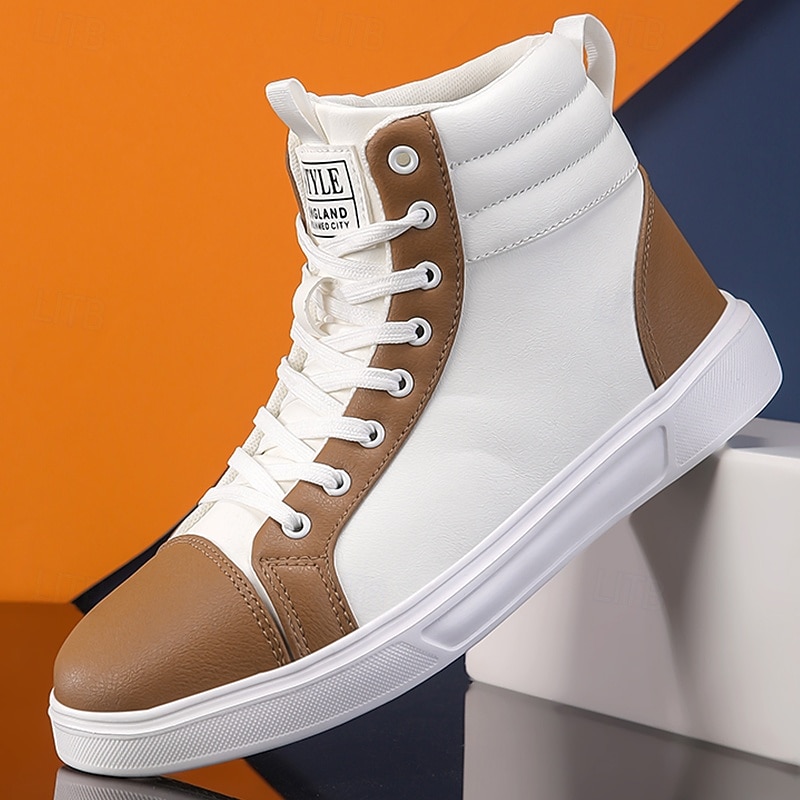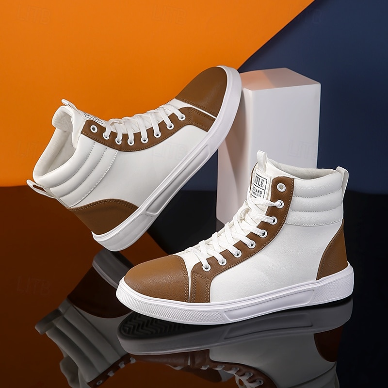 Men's Orange and White High-Top Sneakers, Retro Style Lace-Up Casual Shoes for College Students, Sports and Streetwear Fashion 1