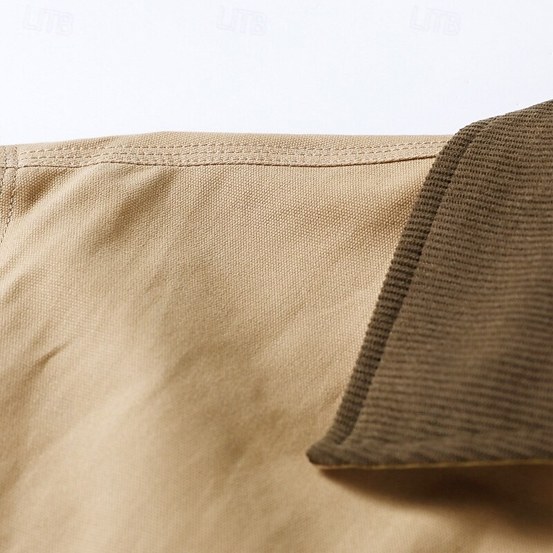 Men's Cargo Jacket Casual Jacket Vacation Daily Breathable Pocket Fall Winter Plain Fashion Classic Lapel Regular Black Brown Khaki Jacket 5