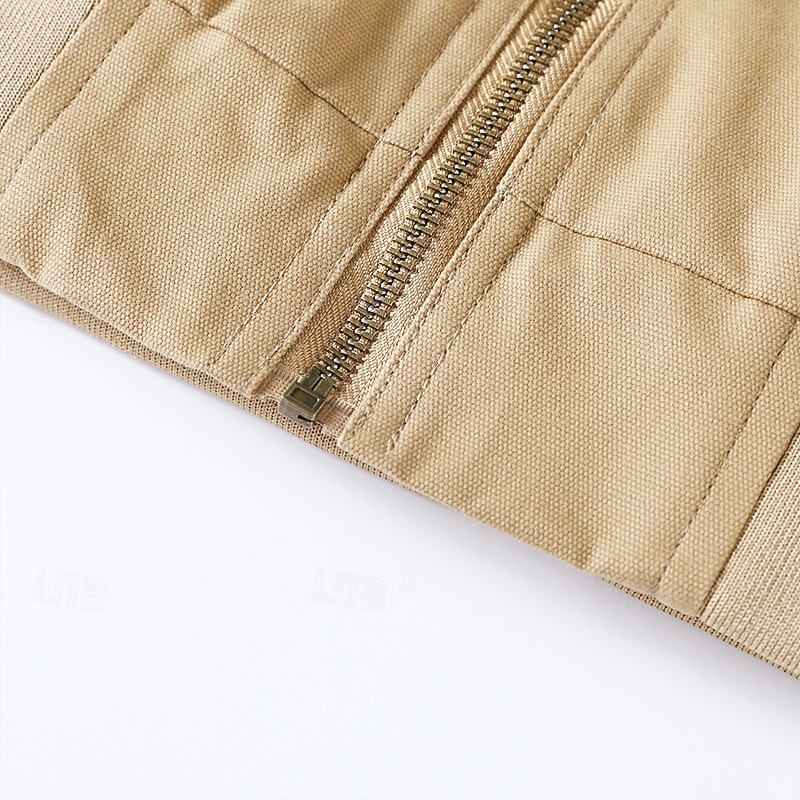 Men's Cargo Jacket Casual Jacket Vacation Daily Breathable Pocket Fall Winter Plain Fashion Classic Lapel Regular Black Brown Khaki Jacket 8