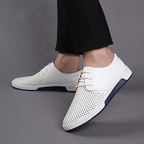 CsgrFagr Summer Style Men's Breathable Comfortable Business Lace Up Leisure Hollow Solid Leather Shoes Mens Nonslip Work Shoes Restaurant (White, 12) 7