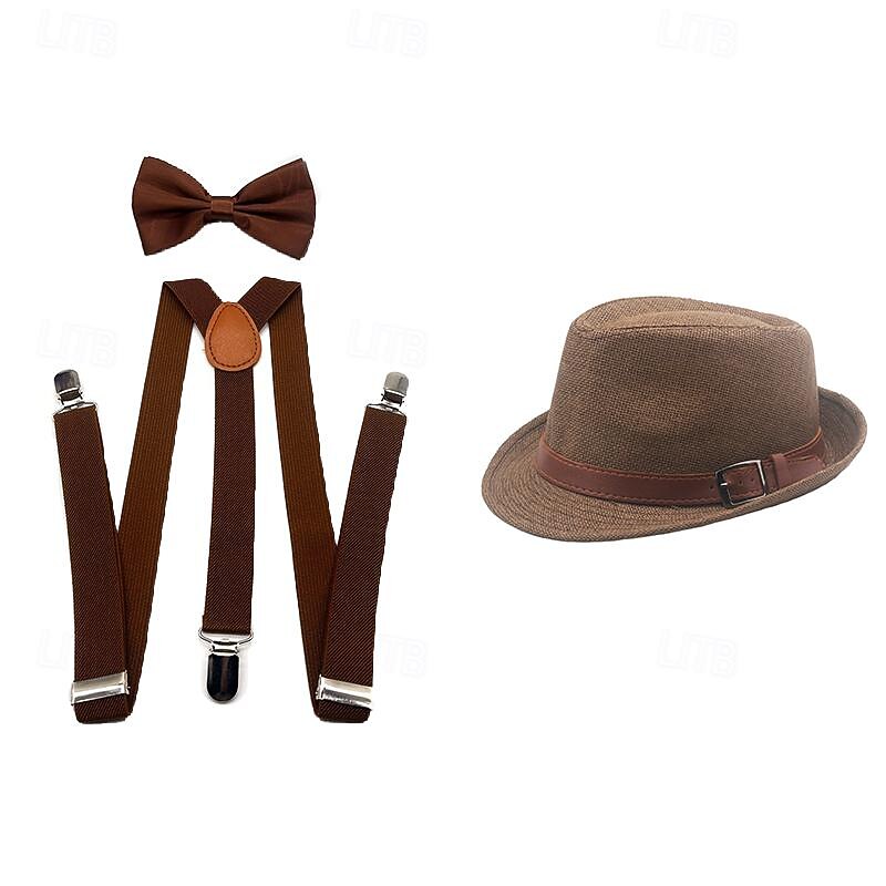 Retro Vintage Roaring 20s 1920s Panama Hat Accesories Set The Great Gatsby Fancy Dress Men's Masquerade Event / Party Bachelorette Party Adults' Cravat Hat Suspenders 3