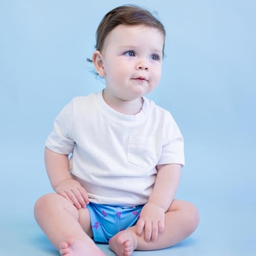 • Baby boy swimsuits contain soft mesh briefs inside and are cut to hit above the knee