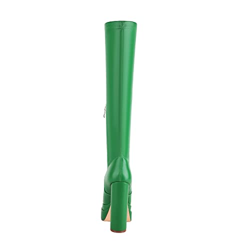 vivianly Women's Platform Knee High Boots Square Toe Chunky Heel Long Stretch Gogo Boots with Side Zipper