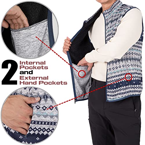 • HIGH QUALITY: The outer layer of this mens sweater fleece vests is made of a comfortable knitted fabric with a soft sherpa lined, which not only has good breathability but also has strong warmth to give you ultimate comfort during cold winter days.
