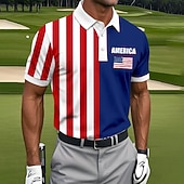 HOT ! Independence Day Male American US Flag Polo Short Sleeve Polo Shirts Turndown Casual Casual Daily Festival Buttons Summer Robin's Egg Blue