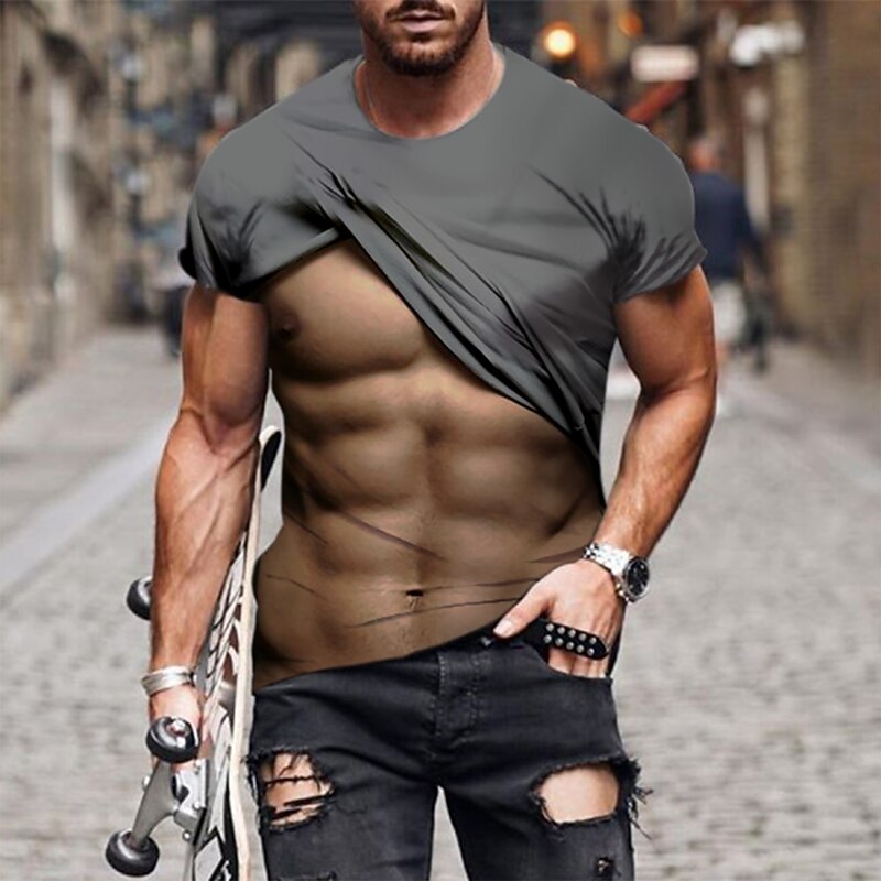 Men's Graphic Prints Muscle Figure T Shirt Funny T Shirts Short Sleeve T shirt 3D Print Crew Neck Shirt Designer Casual Big and Tall Daily Holiday Black White Blue Summer Clothing Apparel S M L XL 10