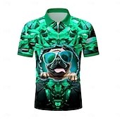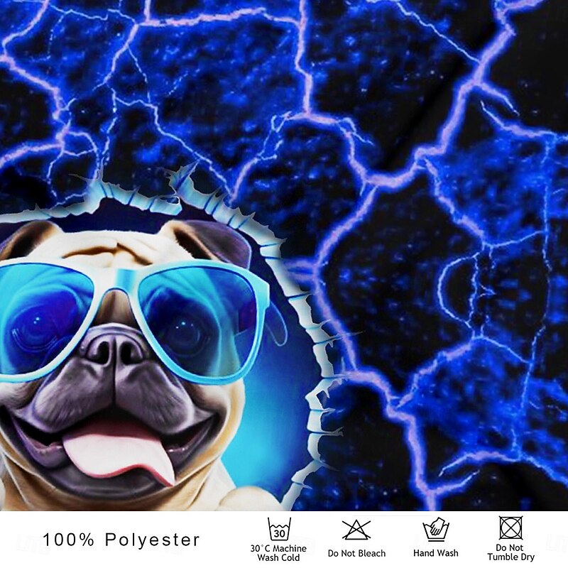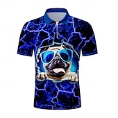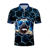 Highlights [Fabric] : Expertly crafted from premium milk fiber, this men's polo shirt offers a soft and breathable experience. The micro-elastic material ensures comfort and flexibility, making it a reliable choice for a variety of activities. [Fit] : Designed for a casual yet polished look, this short sleeve polo shirt provides a relaxed fit that complements different body types, ensuring both style and comfort. [Design Highlights] : Featuring a standout 3D print of an adorable pug in oversized blue sunglasses on an electric blue background, this polo shirt adds a playful flair to any ensemble. The quarter zip at the front enhances its modern aesthetic, while the neat collar and sleeve cuffs complete its cohesive look. [Occasions] : Ideal for streetwear, vacation wear, and party outfits, this vibrant polo shirt is perfect for adding a splash of fun to your summer attire. It's sure to make a statement during casual outings and gatherings. [Size Range] : Available in a comprehensive size range from S to 3XL, this shirt accommodates various sizes, catering to a wide audience of adults.