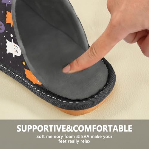JUNZAN Cute Cartoon Ghosts Memory Foam Slippers for Women Men House Slippers for Bedroom Indoor 7