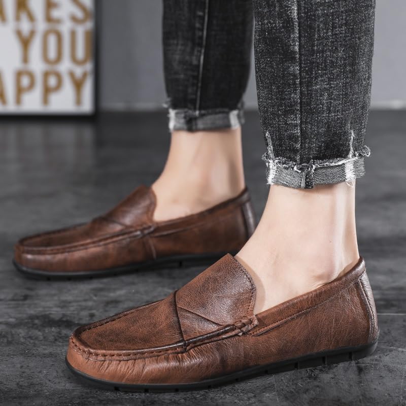 Loafers for Men Round Toe PU Leather Solid Color Moccasins Shoes Lightweight Flexible Slip Resistant Wedding Party Slip-on 7