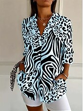 More information about Women's Shirt Blouse Graphic Daily Stylish Retro Vintage 3/4 Length Sleeve Shirt Collar Regular Tops Daily Holiday Going out Buttons Black Blue Purple Spring Fall Winter Spring, Fall, Winter, Summer