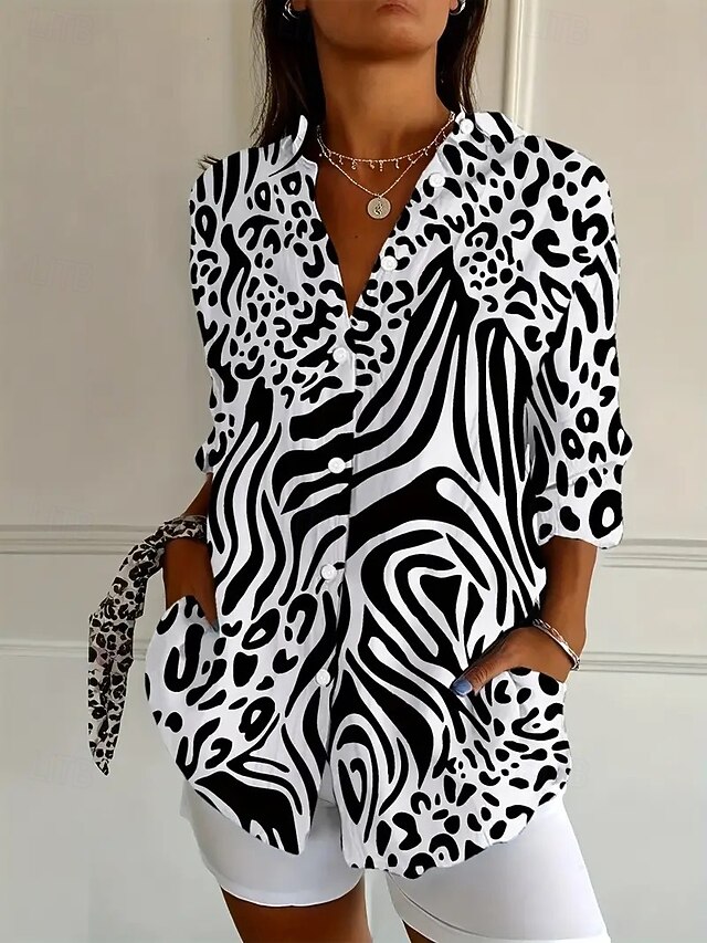 Women's Shirt Blouse Graphic Daily Stylish Retro Vintage 3/4 Length Sleeve Shirt Collar Regular Tops Daily Holiday Going out Buttons Black Blue Purple Spring Fall Winter Spring, Fall, Winter, Summer 9