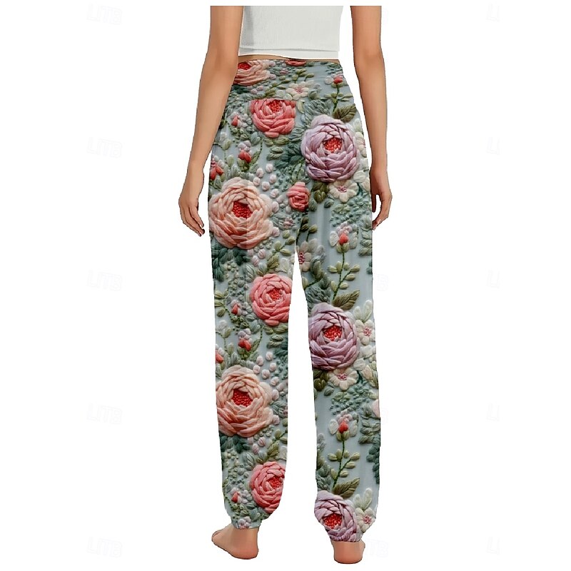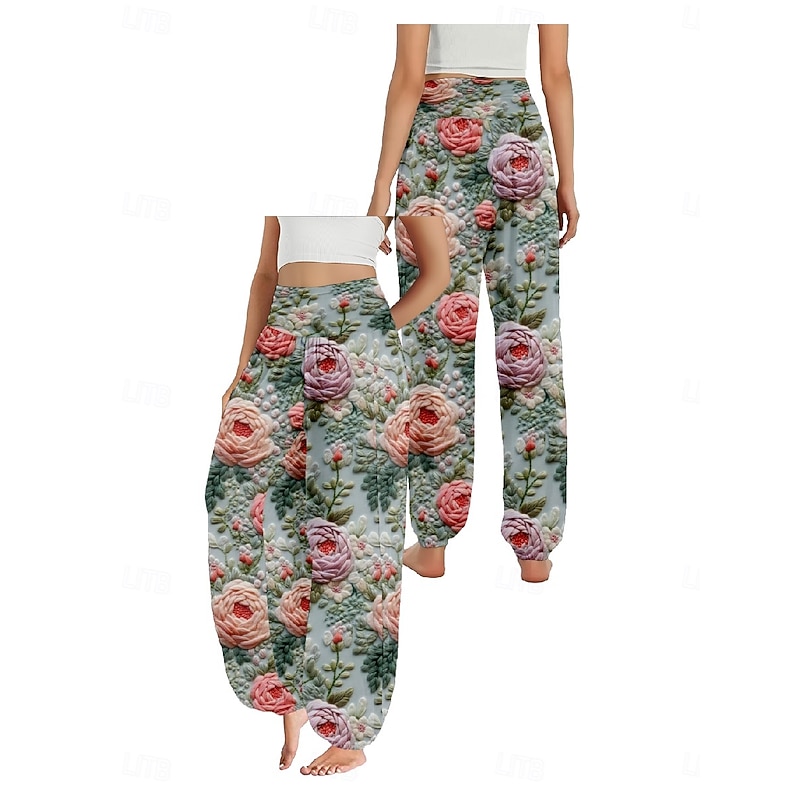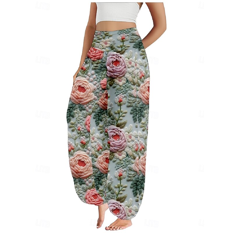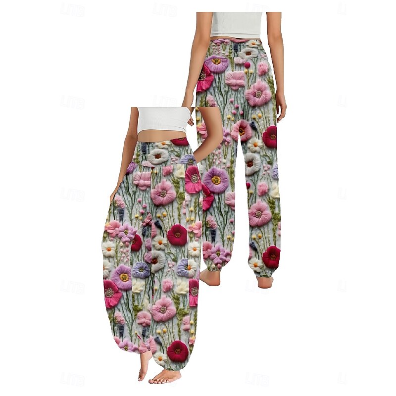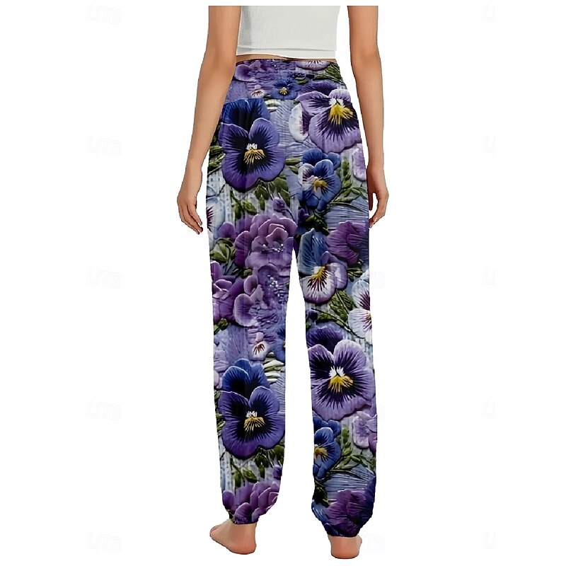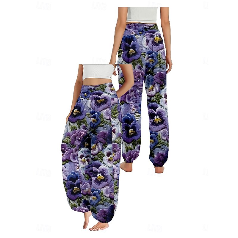 More information about Women's Linen-Inspired Pants Wide Leg Pants Trousers Ethnic Style Casual Boho Full Length High Waist Floral Pocket Elastic Waist Printing Breathability Soft Micro-elastic Outdoor Yoga Pink Purple