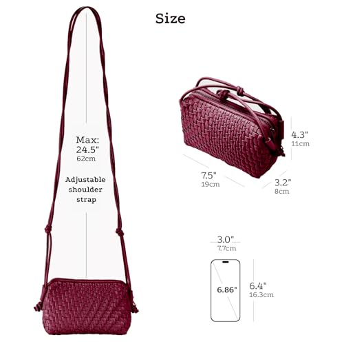 Woven Crossbody Bag for Women, Vegan Leather Small woven purse,zipper bags with Adjustable Strap