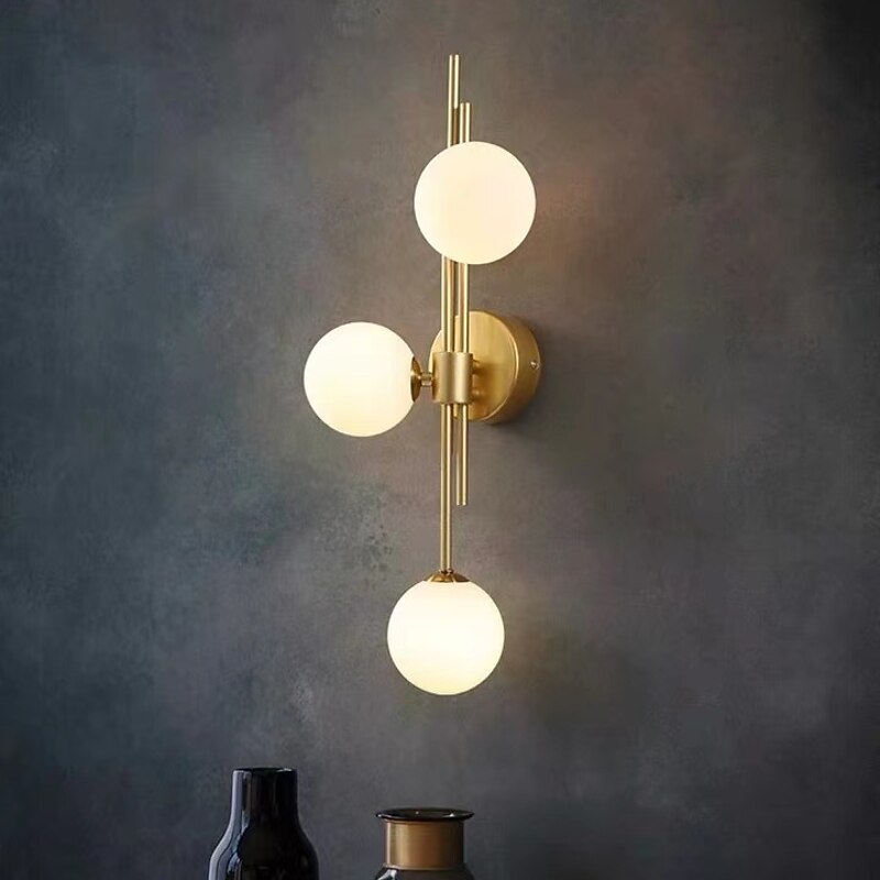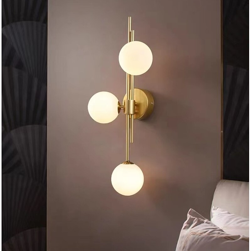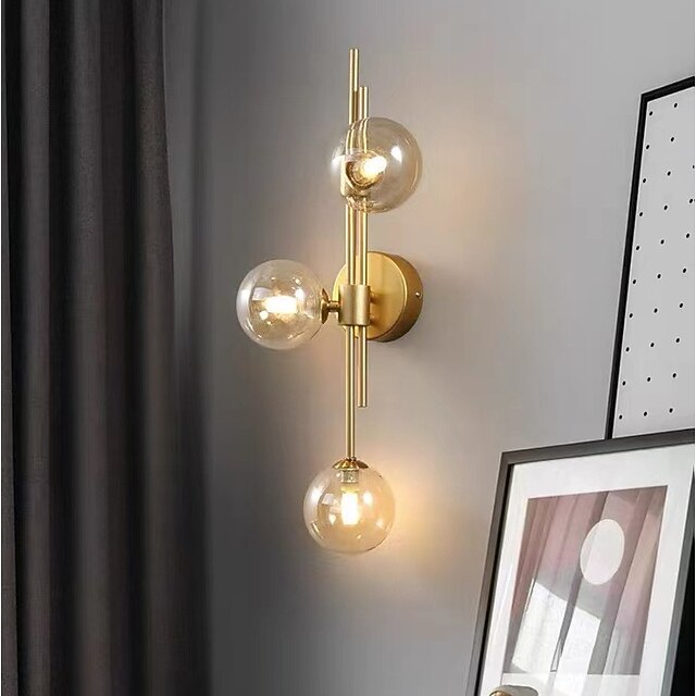 LED Wall Light 3 Lights Glass Wall Sconce Mid Century Modern Globe Wall Light Fixture Bathroom Vanity with Glass Shade Indoor Wall Sconce for Bedroom Living Room Corridor 19