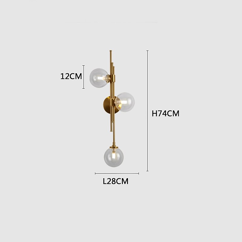 LED Wall Light 3 Lights Glass Wall Sconce Mid Century Modern Globe Wall Light Fixture Bathroom Vanity with Glass Shade Indoor Wall Sconce for Bedroom Living Room Corridor 12