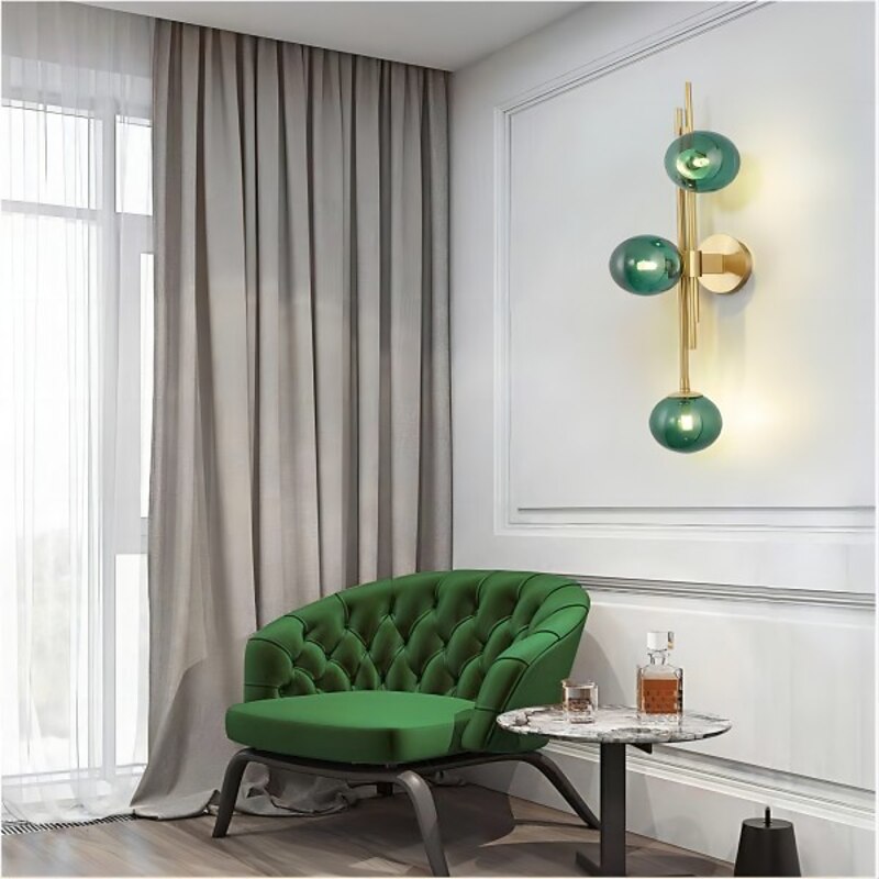 LED Wall Light 3 Lights Glass Wall Sconce Mid Century Modern Globe Wall Light Fixture Bathroom Vanity with Glass Shade Indoor Wall Sconce for Bedroom Living Room Corridor 11