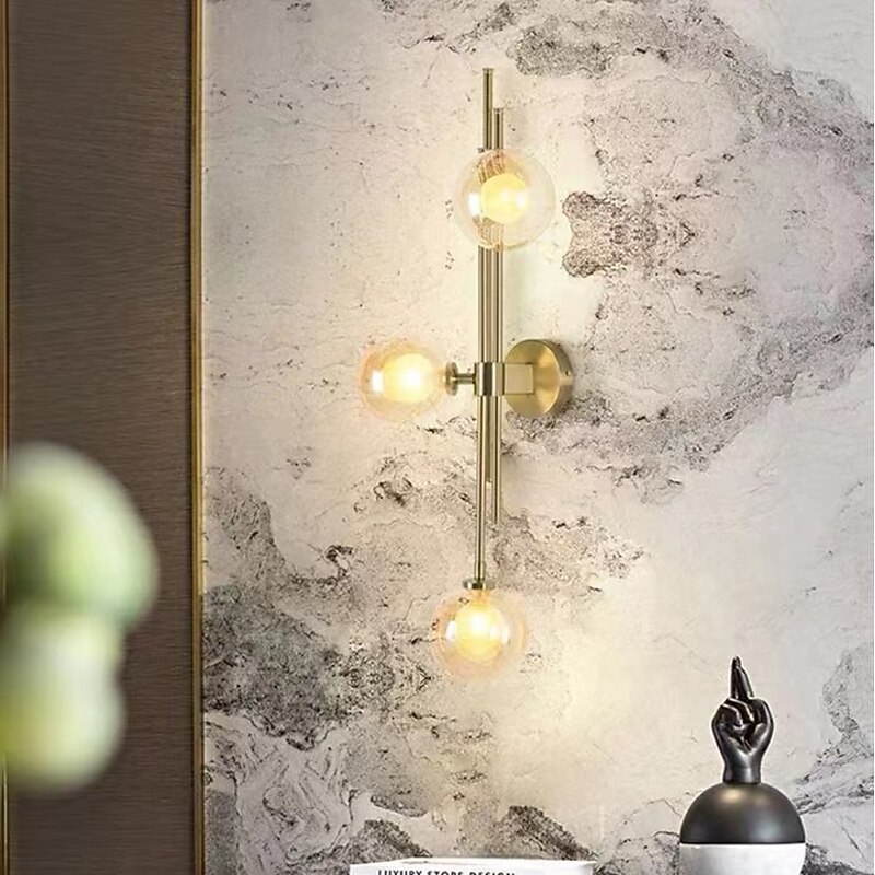 LED Wall Light 3 Lights Glass Wall Sconce Mid Century Modern Globe Wall Light Fixture Bathroom Vanity with Glass Shade Indoor Wall Sconce for Bedroom Living Room Corridor 23